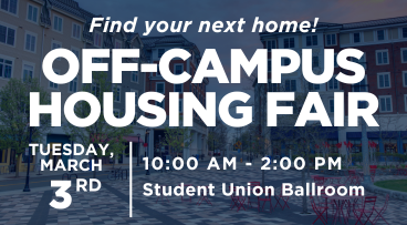 This is your chance to research off-campus housing options for next year! Representatives from several apartment communities will be available to answer your questions about their apartments and availability. Goodies and giveaways too!